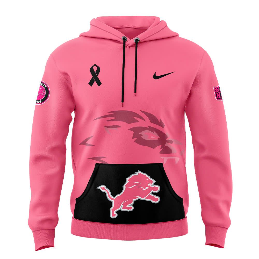 Detroit Lions Men’s and Women’s Breast Cancer Awareness Crucial Catch Fanfare Hoodie – Black Pink