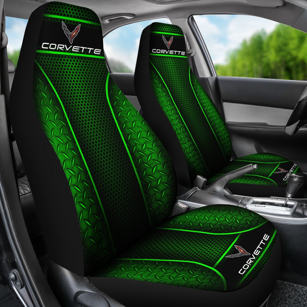2 Front Corvette C8 Seat Covers Green
