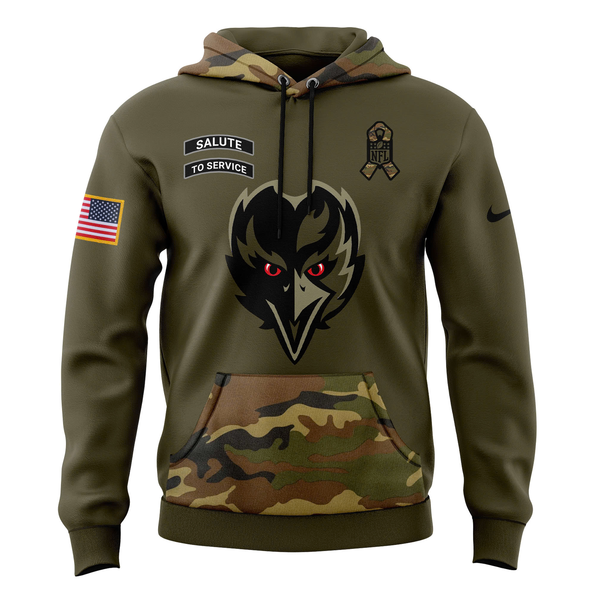 Baltimore Ravens Camo Salute to Service Club Fleece Pullover Hoodie