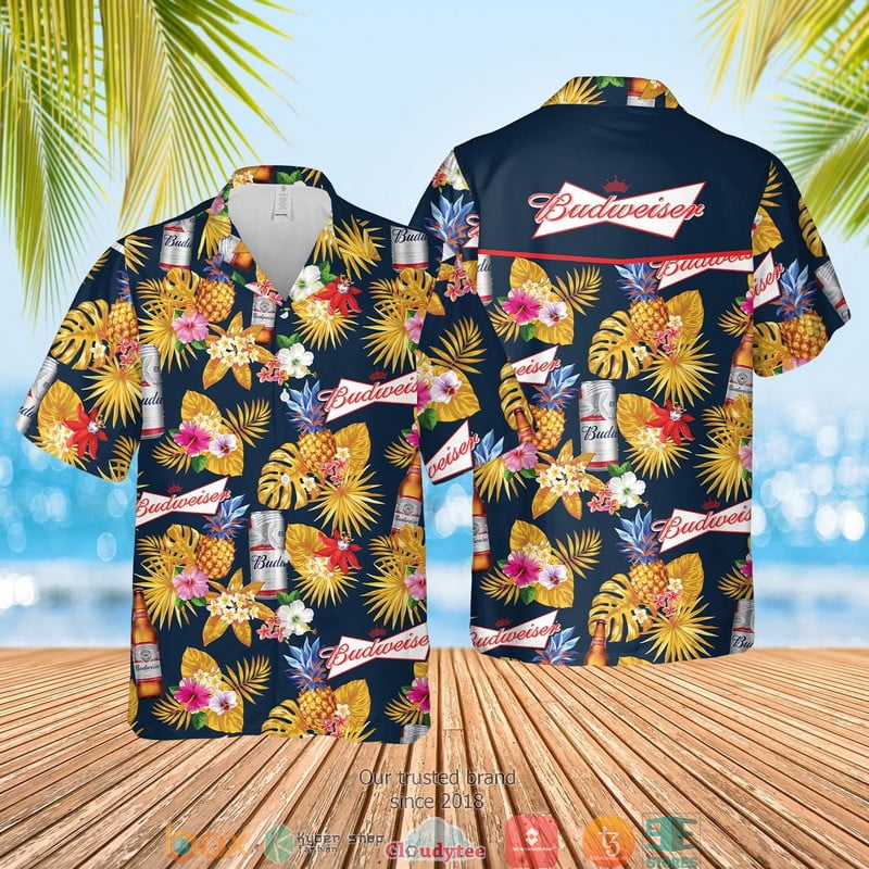 Budweiser Tropical Navy Hawaian Summer Outfit Aloha Beach Shirt