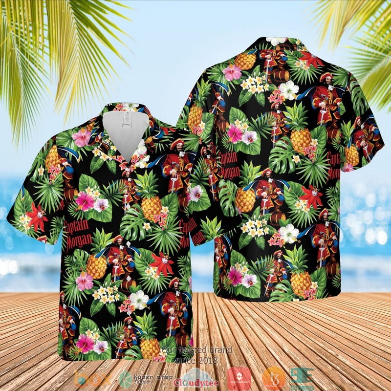 Captain Morgan Tropical Black Hawaian Summer Outfit Aloha Beach Shirt