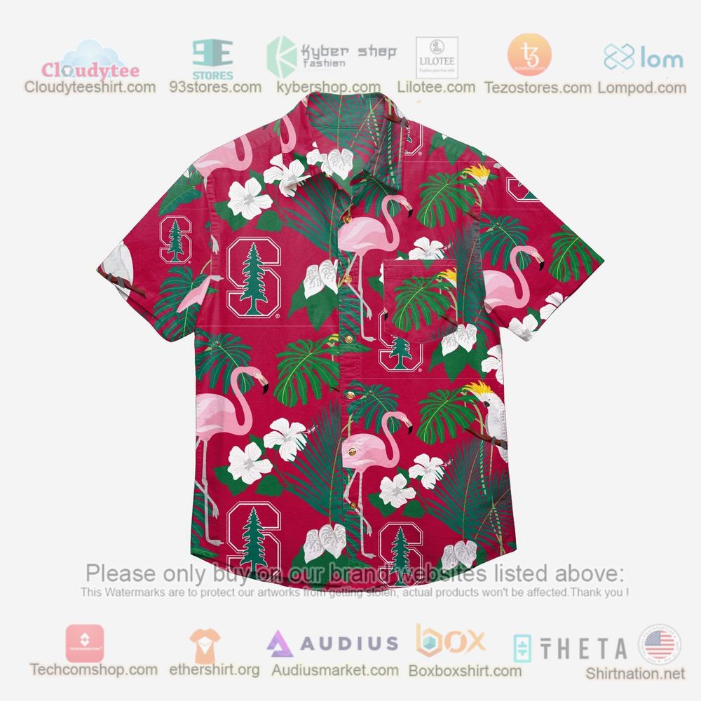 Stanford Cardinal Floral Button Up Hawaiian Shirt Aloha Beach Shirt